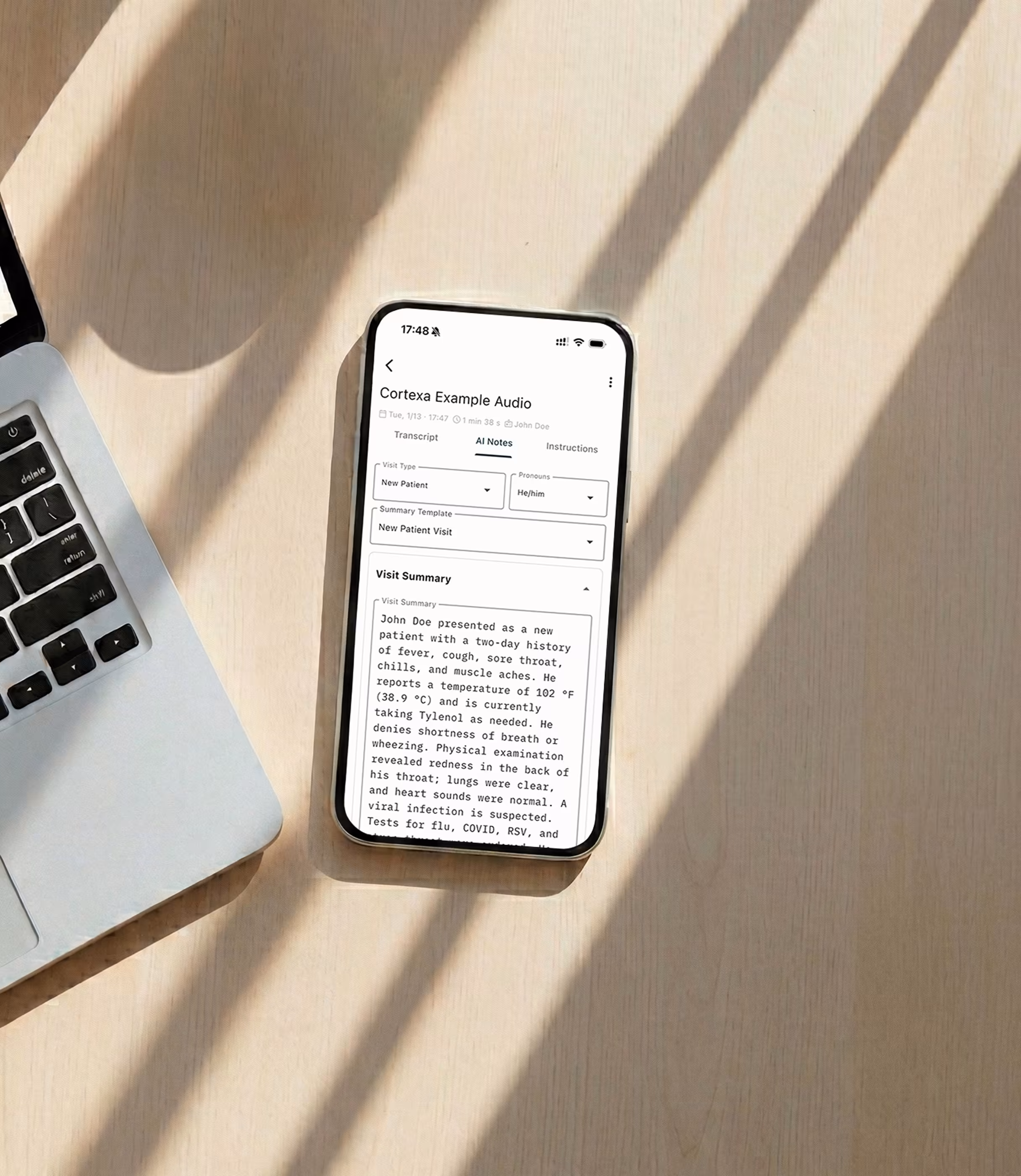 Cortexa Note's seamless transcription keeps us on schedule. It gives us time to listen properly instead of rushing-time to thoroughly assess, diagnose, and answer patient questions.
